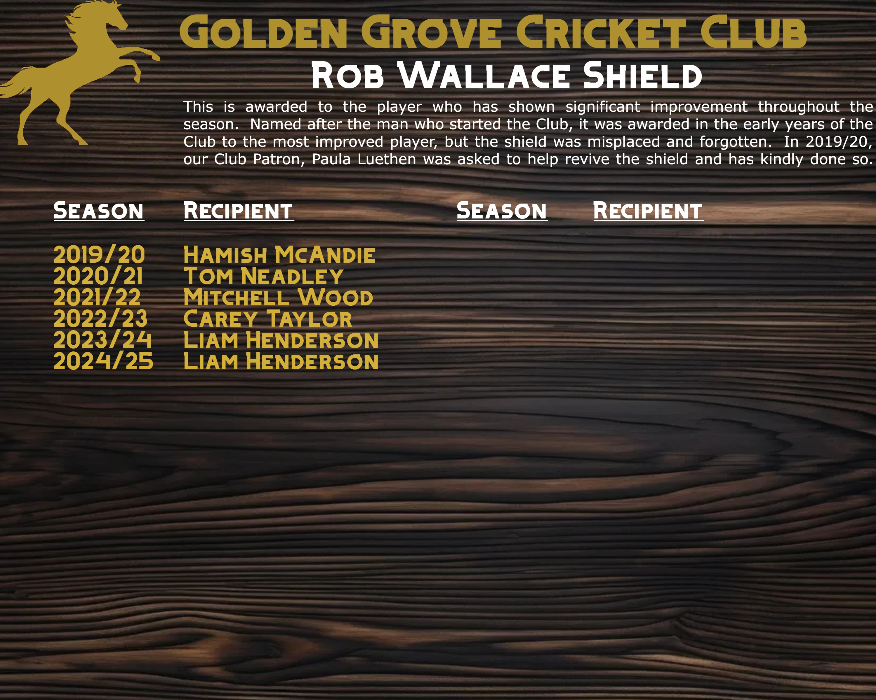 Thanks to George Eden and Gary Johns, Senior statistics for Golden Grove's turf era are available. The Club has found some old scorebooks from the hard-wicket era. Updating records is a laborious process. Check the records page from time-to-time to see if anything new has been added.